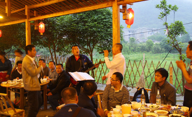 武陵源大作坊美食城是武陵源景區(qū)規(guī)模最大,品種最多,環(huán)境最優(yōu)雅的休閑美食城。有各式小炒火鍋,岳陽(yáng)特色燒烤系列,鐵板燒系列,鴨霸王系列,潮州特色砂鍋粥系列,涼菜醬菜系列,湘西地方特色小吃系列等。美食城整晚邀請(qǐng)著名的流浪歌手阿彪為你獻(xiàn)歌助興,并可同阿彪歌聲互動(dòng),在這里你可以放下一天的疲勞,拋開(kāi)一身鎖事,度過(guò)美好的每一分鐘......武陵源夜市大作坊,是張家界旅游體驗(yàn)的重要一站,它受到如此多的游客的熱捧,是因?yàn),在這里能釋?xiě),是因(yàn)樵谶@里,能體驗(yàn)張家界旅游的文化內(nèi)涵, 是因?yàn)樵谶@里,能給你一個(gè)自由的空間......