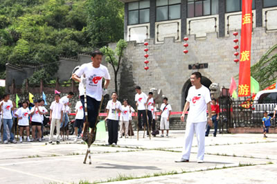 張家界高花燈亦稱高皇燈,是流行于永定沅古坪一帶富有民族特色的舞蹈。表演時(shí),12人至24人不等。配有鑼、鈸、嗩吶、鼓等樂(lè)器。每人手中拿一盞紙?jiān)鸁艋\,內(nèi)點(diǎn)蠟燭兩根,頂扎一木偶像,用五色紙剪成戲文故事如“八仙” 、“瓦崗寨”,“梁山英雄 ”之類。高花燈表演有一套程式,要求東起西落,進(jìn)一個(gè)“半邊月”,出一個(gè)“月團(tuán)圓”,舞個(gè)“太極圖”。亦可進(jìn)民房表演,叫“愿燈”,多為祝福、還愿或?yàn)槟臣蚁彩聹惾。打吆喝、打口哨則只能到戶外表演,叫“眾燈”,是讓大家看的。其形式又分民燈、戰(zhàn)燈。前者表演 古代先民的遷徙、繁衍、勞動(dòng)、生活;后者表演打仗破陣。隊(duì)形變化有“織籬笆”、滾柱頭”、“十八斗”、“螺螄轉(zhuǎn)頂”、“八卦陣”、“過(guò)天星”、“一字長(zhǎng)蛇”等二十余種。如破“象棋盤(pán)陣”,主人插三十二根香,擺成棋盤(pán)陣,表演時(shí),主人舉紅傘,玩燈者舉黑傘,從河道進(jìn),將眾“子”一一吃掉(即踩香),這是斗智的競(jìng)賽。只見(jiàn)燈火如流星般穿插舞蹈 ,旁邊配以龍燈互舞(配龍玩燈,是高花燈的主要特點(diǎn)之一),那激起的鑼鼓聲、吆喝聲、口哨聲,掀起有節(jié)奏的聲浪,熱烈而歡快。 張家界高花燈發(fā)祥于張家界市永定區(qū)沅古坪鎮(zhèn)等地區(qū),與沅古坪地區(qū)接壤的沅陵、桃源、慈利等周邊區(qū)縣也有少量玩高花燈的習(xí)慣。 高花燈的燈代表著光明幸福,12個(gè)燈表示12個(gè)月,月月平安無(wú)事。每年春節(jié),每個(gè)村寨都要操練一班高花燈,辭舊迎新。制作時(shí),藝人用竹篾和紙?jiān)?2或24個(gè)燈籠,在燈籠下加上一個(gè)長(zhǎng)柄燈托,并在燈籠上扎上五顏六色的“故事”,如“八仙”、“耿氏送子”等。夜晚,在燈籠里點(diǎn)上木油臘燭,一人舉一個(gè)燈籠,邊舞邊組成多種隊(duì)形。一眼望去,流光閃爍,尤如銀河戲舞。 張家界高花燈不但為本鄉(xiāng)本土的觀眾所喜愛(ài),而且受到海內(nèi)外朋友及國(guó)際友人的高度贊賞。因?yàn)樗侵袊?guó)古老的民間舞蹈代表,它以自成體系的記譜方法,延繼著中國(guó)舞蹈的血脈,以其悠久的舞蹈歷史和多元文化特征,被舞蹈界認(rèn)為是“中國(guó)舞蹈歷史上的活化石”,極具學(xué)術(shù)研究?jī)r(jià)值和很高的審美價(jià)值。已列入全省第一批非物質(zhì)文化遺產(chǎn)保護(hù)名錄。 高花燈相傳起源于東漢章帝初年,時(shí)“ 中蠻”覃兒健在澧水中下游舉義反漢,與漢軍“戰(zhàn)于洪下”(相傳為今大庸紅土坪,待考),洪下“蠻人”用火 把跳舞為義軍吶喊助戰(zhàn),終因漢軍勢(shì)眾,覃兒健與義軍全部戰(zhàn)死(至今留下懸鼓坪、御甲埡、扎營(yíng)山、烽火臺(tái)等古戰(zhàn)場(chǎng)遺跡)。以后,當(dāng)?shù)匦U人每年都必在過(guò) 后年(從正月初一至元宵節(jié))打火把集會(huì)跳舞, 栽“ 陽(yáng)樁”(土話栽跟頭),表示對(duì)“洪下之戰(zhàn)”的紀(jì)念 。久而久之,火把進(jìn)化成燈籠和扎人物事故,表演也 有一定規(guī)矩。至今,這種舞蹈藝術(shù)還保留著古老、原始、粗獷、豪放、悲壯的特色。 |