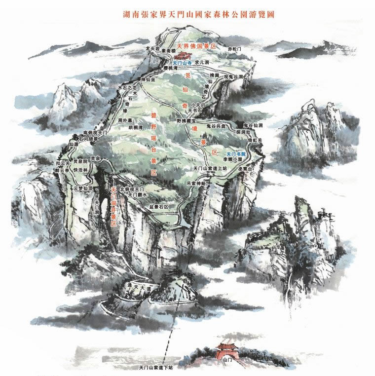 天門山國家森林公園游覽圖《天門山旅游圖》