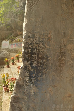 萬華巖摩崖石刻群 位于郴州市北湖區(qū)萬華巖鎮(zhèn)萬華巖國家級(jí)風(fēng)景名勝區(qū)內(nèi)。萬華巖洞內(nèi)留下了大量的宋代、清代石刻。其中立于清咸豐十年(1860)三月的《坦山萬華巖敘》碑,高1.5米,寬1.0米,厚0.3米,碑文800字,楷書,字跡清晰。記載了太平軍攻入郴州和退出郴州的時(shí)間、地點(diǎn)及當(dāng)年太平軍犯郴及當(dāng)?shù)匕傩盏挚沟那闆r。