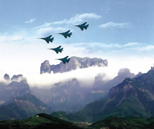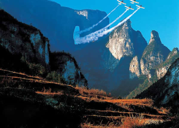 天門(mén)洞上空特技飛行表演
