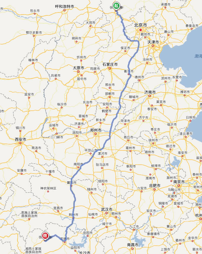 張家口去張家界自駕車線路圖全程高速):
