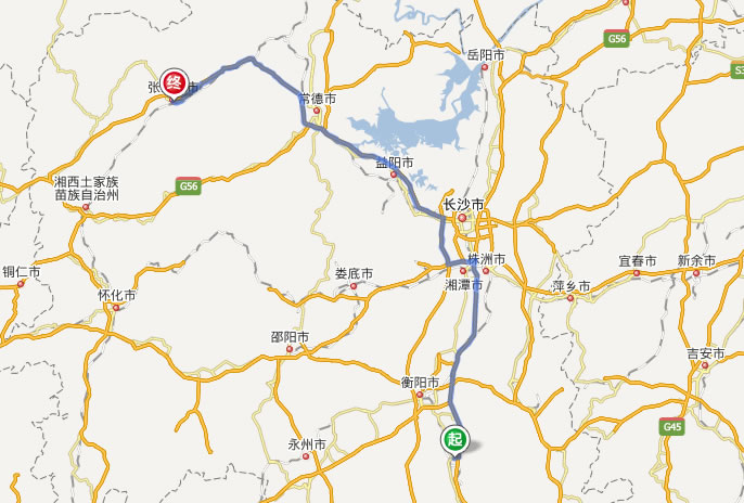 左右,沿途經過耒陽市——衡山縣——株洲市——長沙——益陽——常德——慈利——張家界市。