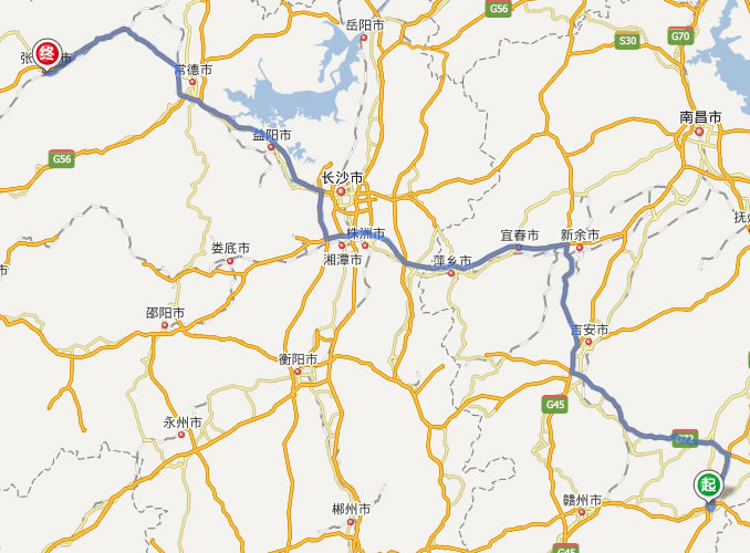瑞金去張家界自駕車自助游線路圖全程高速):