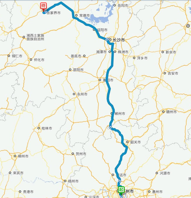 現(xiàn)在位置:張家界旅行社->交通指南->自駕車路線 -> 番禺到張家界旅游自駕車線路,番禺去張家界自己開車要多長時間,有多少公里