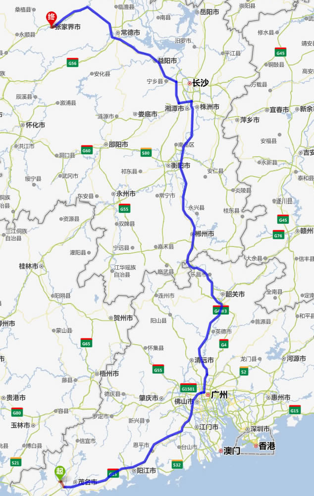 現(xiàn)在位置:張家界旅行社->交通指南->自駕車路線 -> 化州到張家界旅游自駕車線路,化州去張家界自己開車要多長時間,有多少公里